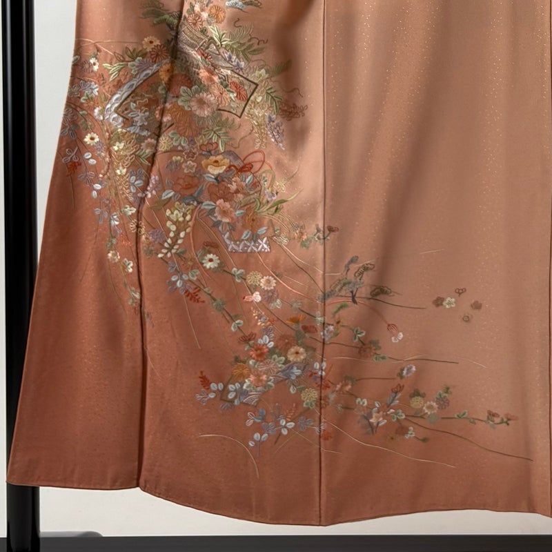 【着物ランク】秀品 【素材】正絹 【身丈】約152cm 【裄丈】約62.5cm 【袖丈】約48cm 【袖幅】約33cm 【前幅】約23cm 【後幅】約29cm 【サイズ】S 【着物仕立て】袷 【着用時期】10~5月 【状態ランク】ランクB 【着物着用シーン】披露宴、パーティー、式典、食事会、お茶会、正月