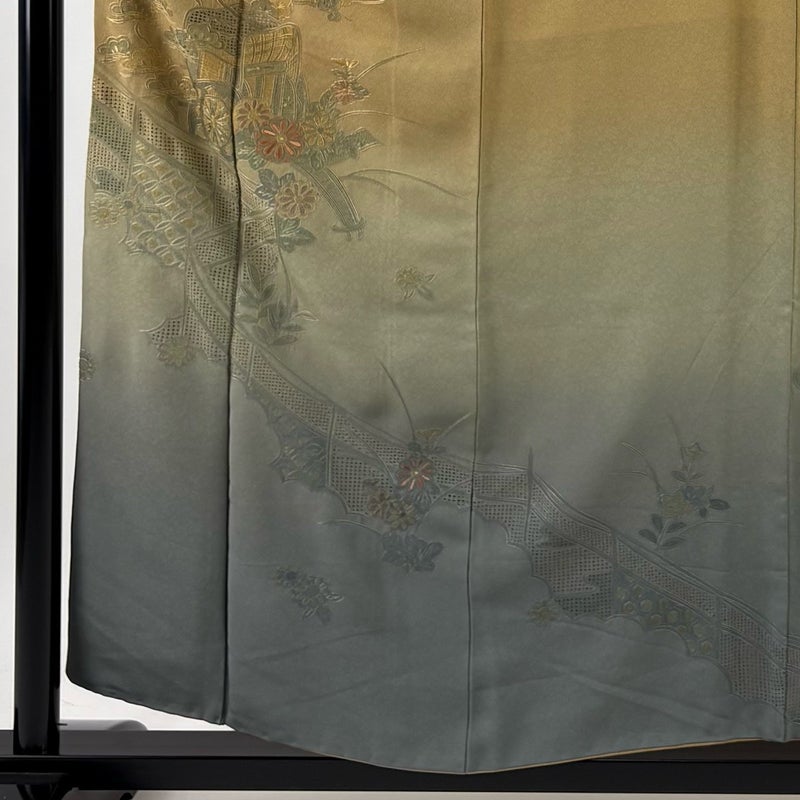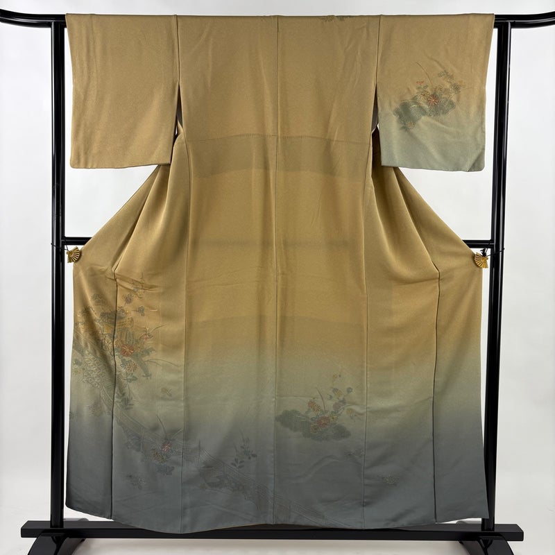 【付下げ】 黄色系 黄土色 秀品 B 約150cm~約159cm 裄丈62cm以下 (S)size 袖丈46cm以下 4000-7980 二万以下