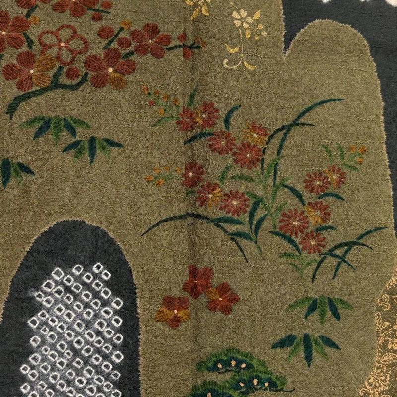 【着物ランク】秀品 【素材】正絹 【身丈】約161cm 【裄丈】約69cm 【袖丈】約49cm 【袖幅】約34.5cm 【前幅】約24cm 【後幅】約29.5cm 【サイズ】L 【着物仕立て】袷 【着用時期】10~5月 【状態ランク】ランクC 【着物着用シーン】披露宴、パーティー、式典、食事会、お茶会、正月