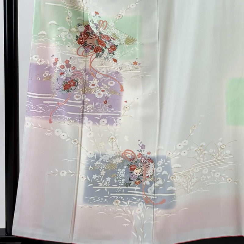 【着物ランク】優品 【素材】正絹 【身丈】約158cm 【裄丈】約65cm 【袖丈】約49.5cm 【袖幅】約33.5cm 【前幅】約23.5cm 【後幅】約29.5cm 【サイズ】M 【着物仕立て】袷 【着用時期】10~5月 【状態ランク】ランクB 【着物着用シーン】披露宴、パーティー、式典、食事会、お茶会、正月