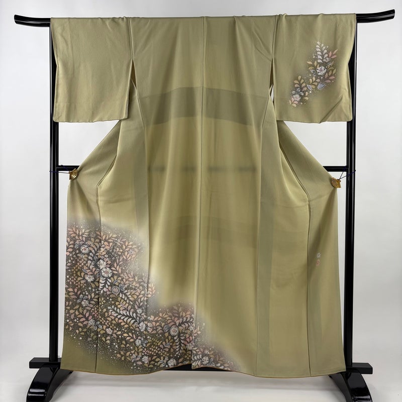 【付下げ】 緑系 抹茶色 名品 B 約160cm~約169cm 裄丈67cm-68cm (L)size 袖丈47cm 9990-29990 二万以下