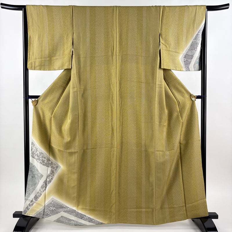 【付下げ】 黄色系 からし色 秀品 B 約160cm~約169cm 裄丈66cm (M)size 袖丈48cm 4000-7980 二万以下