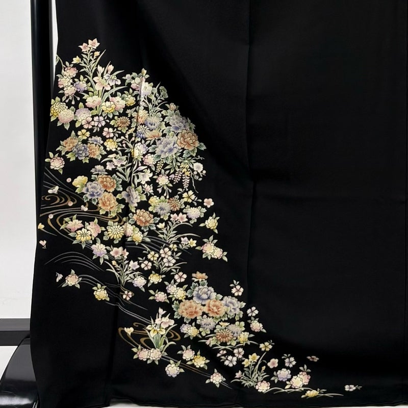 【付下げ】 黒系 黒 秀品 B 約170cm~約179cm 裄丈67cm-68cm (L)size 袖丈49cm 4000-7980 二万以下