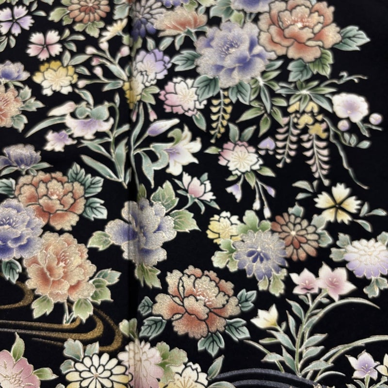 【着物ランク】秀品 【素材】正絹 【身丈】約174.5cm 【裄丈】約68cm 【袖丈】約49cm 【袖幅】約35cm 【前幅】約24cm 【後幅】約30cm 【サイズ】L 【着物仕立て】袷 【着用時期】10~5月 【状態ランク】ランクB 【着物着用シーン】披露宴、パーティー、式典、食事会、お茶会、正月