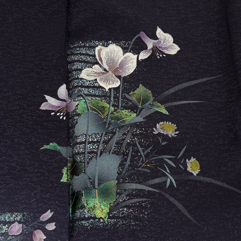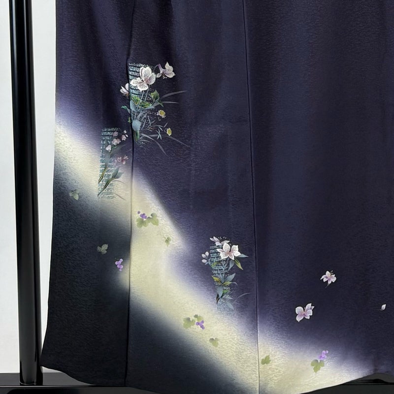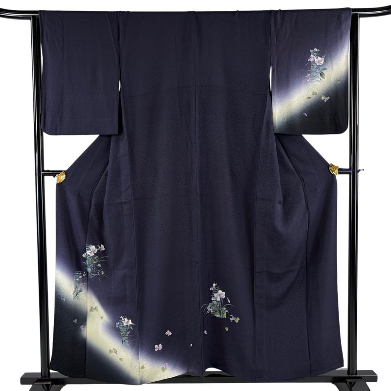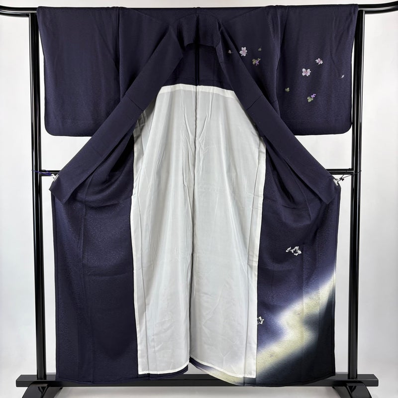 【付下げ】 青系 濃紺 秀品 A 約150cm~約159cm 裄丈65cm (M)size 袖丈50cm-60cm 9990-29990 美品 二万以下