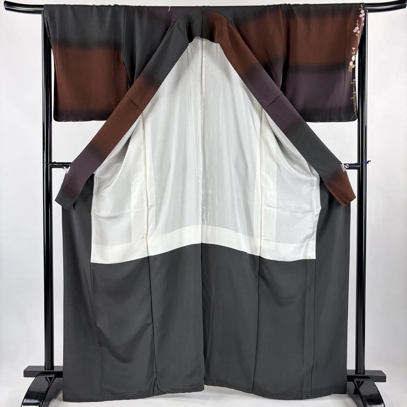 【付下げ】 茶系 茶紫 秀品 A 約160cm~約169cm 裄丈66cm (M)size 袖丈48cm 7990-9980 美品 二万以下
