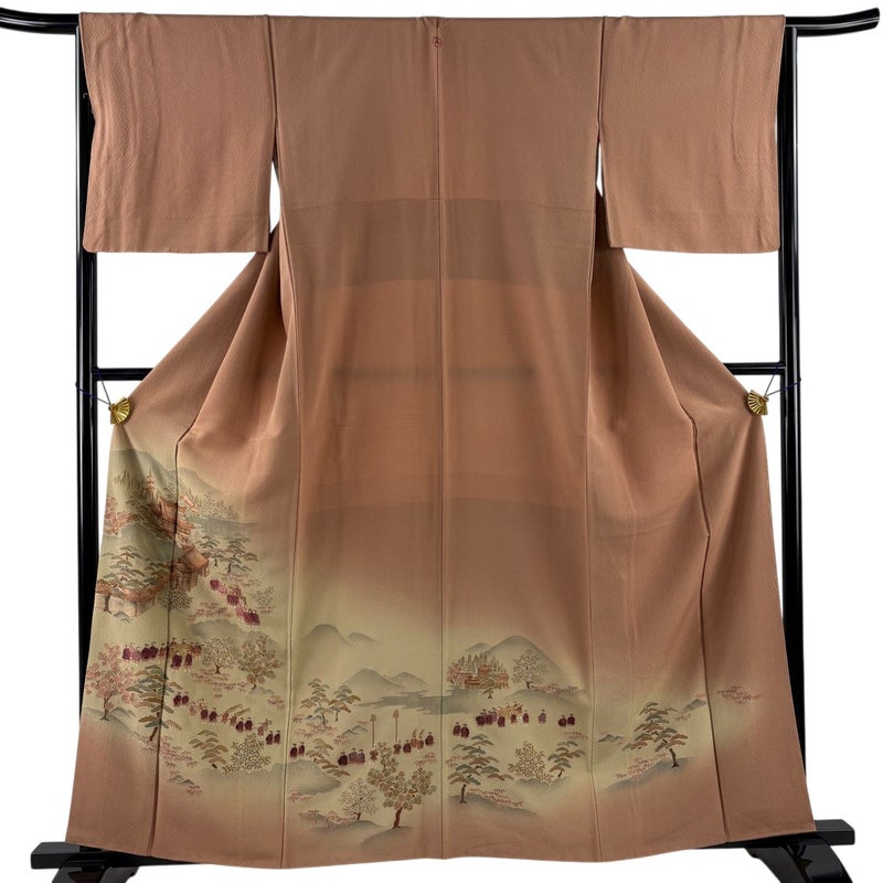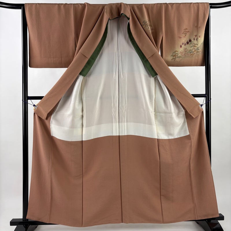 【付下げ】 茶系 薄茶色 秀品 B 約160cm~約169cm 裄丈65cm (M)size 袖丈47cm 4000-7980 二万以下