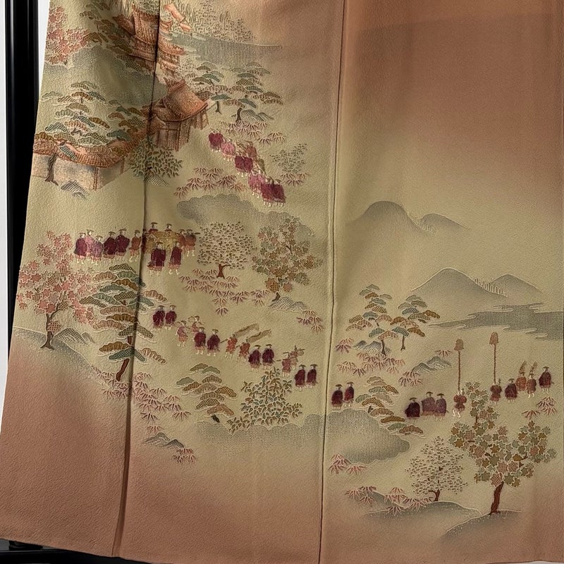 【着物ランク】秀品 【素材】正絹 【身丈】約161cm 【裄丈】約65.5cm 【袖丈】約47cm 【袖幅】約34cm 【前幅】約25cm 【後幅】約30cm 【サイズ】M 【着物仕立て】袷 【着用時期】10~5月 【状態ランク】ランクB 【着物着用シーン】披露宴、パーティー、式典、食事会、お茶会、正月