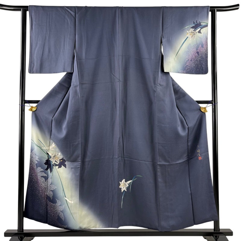 【着物ランク】名品 【素材】正絹 【身丈】約154cm 【裄丈】約62.5cm 【袖丈】約48.5cm 【袖幅】約32.5cm 【前幅】約24cm 【後幅】約30.5cm 【サイズ】S 【着物仕立て】袷 【着用時期】10~5月 【状態ランク】ランクB 【作家名】丹下雄介 【着物着用シーン】披露宴、パーティー、式典、食事会、お茶会、正月