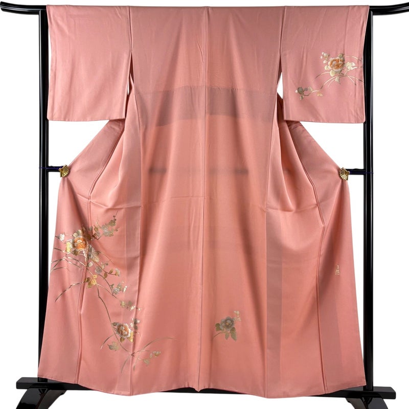 【付下げ】 赤系 ピンク 名品 B 約150cm~約159cm 裄丈63cm-64cm (M)size 袖丈49cm 9990-29990 二万以下