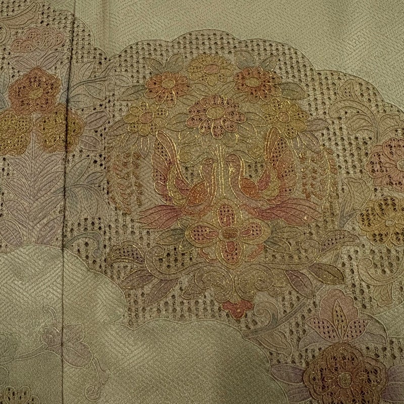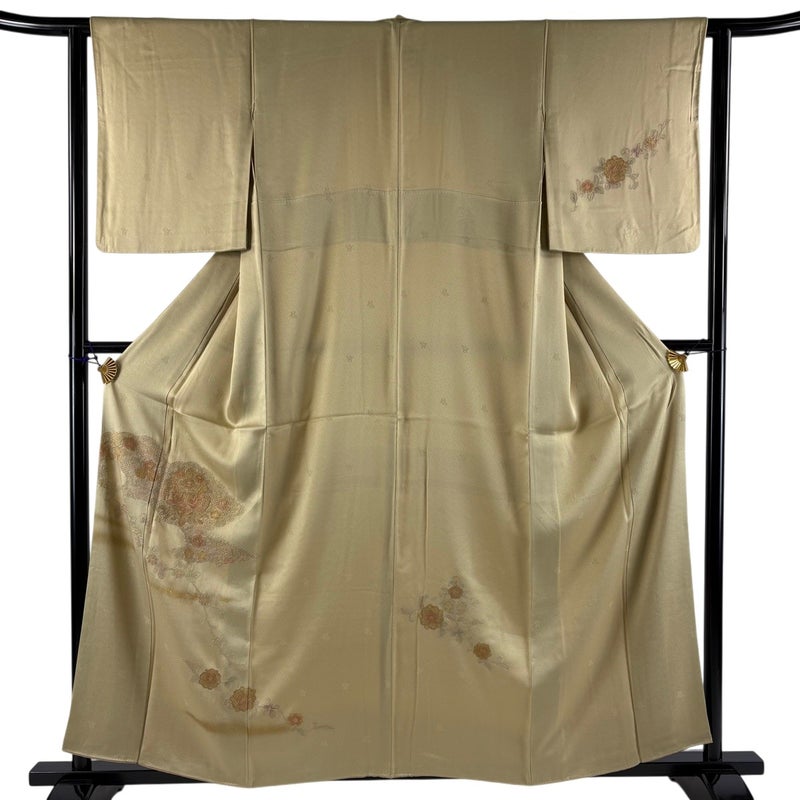 【着物ランク】秀品 【素材】正絹 【身丈】約158cm 【裄丈】約62.5cm 【袖丈】約48cm 【袖幅】約32cm 【前幅】約23.5cm 【後幅】約29.5cm 【サイズ】S 【着物仕立て】袷 【着用時期】10~5月 【状態ランク】ランクB 【着物着用シーン】披露宴、パーティー、式典、食事会、お茶会、正月
