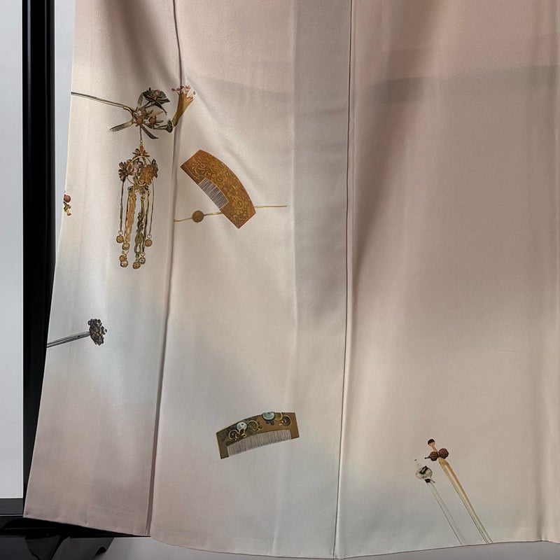 【着物ランク】秀品 【素材】正絹 【身丈】約162cm 【裄丈】約64cm 【袖丈】約48cm 【袖幅】約32cm 【前幅】約23.5cm 【後幅】約29.5cm 【サイズ】M 【着物仕立て】袷 【着用時期】10~5月 【状態ランク】ランクA 【着物着用シーン】披露宴、パーティー、式典、食事会、お茶会、正月