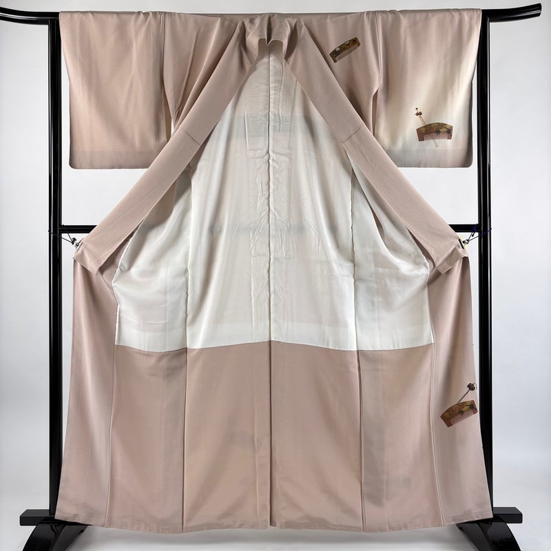 【付下げ】 赤系 ピンクベージュ 秀品 A 約160cm~約169cm 裄丈63cm-64cm (M)size 袖丈48cm 7990-9980 美品 二万以下