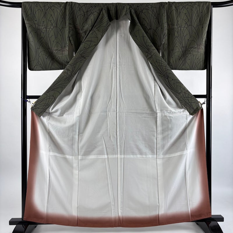 【付下げ】 灰色系 灰緑 秀品 B 約160cm~約169cm 裄丈66cm (M)size 袖丈48cm 4000-7980 二万以下