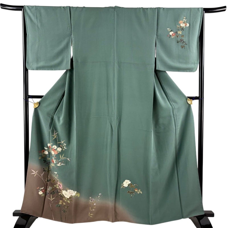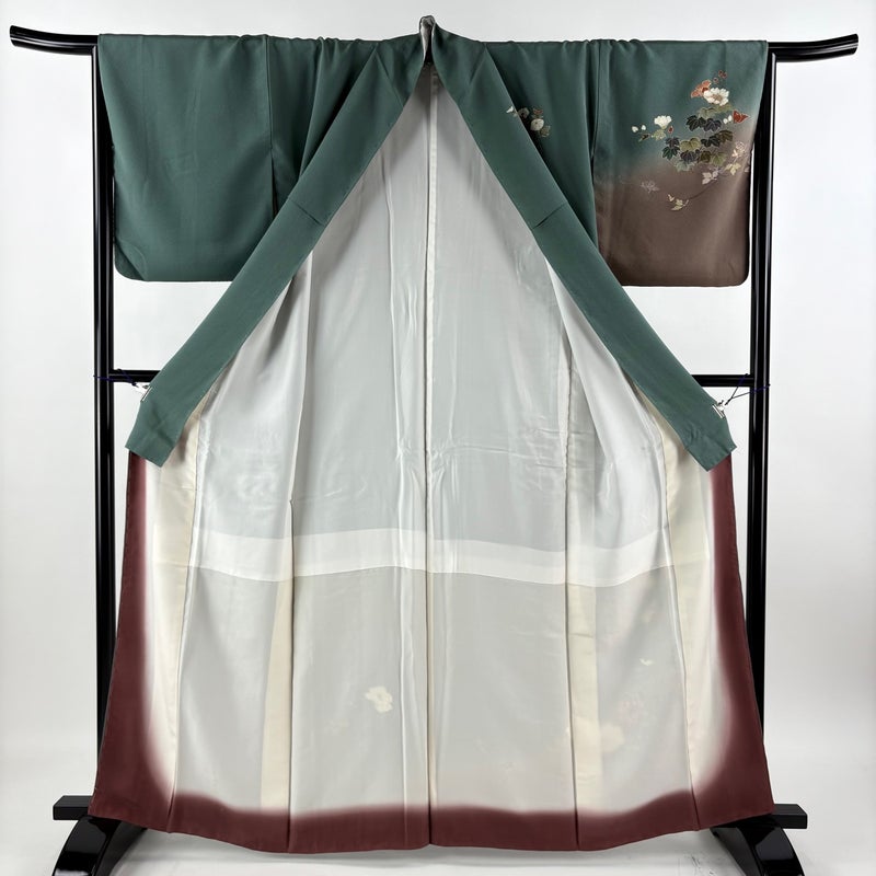 【付下げ】 灰色系 灰緑 秀品 B 約160cm~約169cm 裄丈63cm-64cm (M)size 袖丈48cm 4000-7980 二万以下