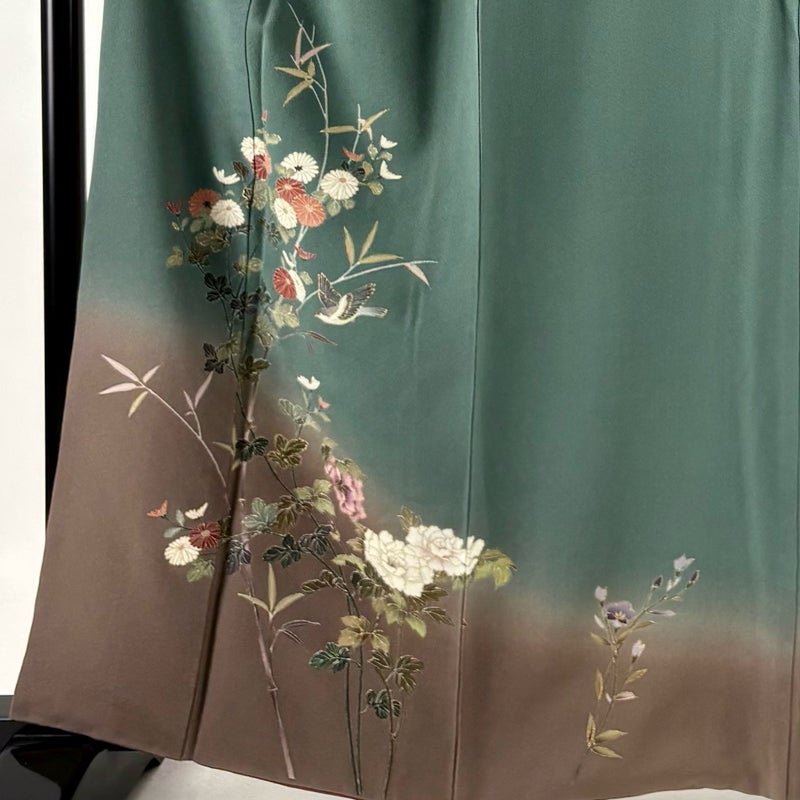 【着物ランク】秀品 【素材】正絹 【身丈】約163.5cm 【裄丈】約64cm 【袖丈】約48.5cm 【袖幅】約33cm 【前幅】約24.5cm 【後幅】約30.5cm 【サイズ】M 【着物仕立て】袷 【着用時期】10~5月 【状態ランク】ランクB 【着物着用シーン】披露宴、パーティー、式典、食事会、お茶会、正月