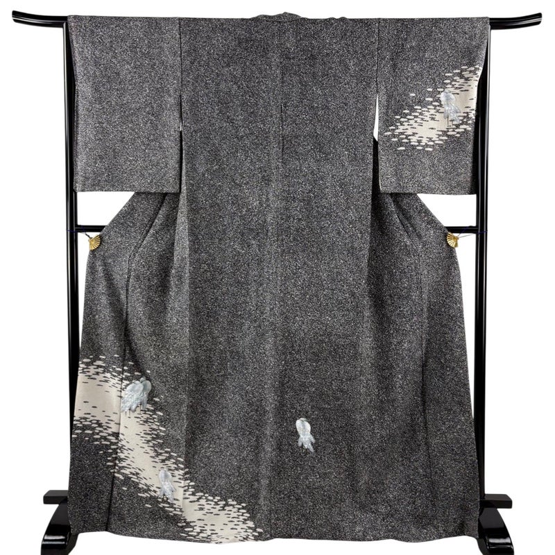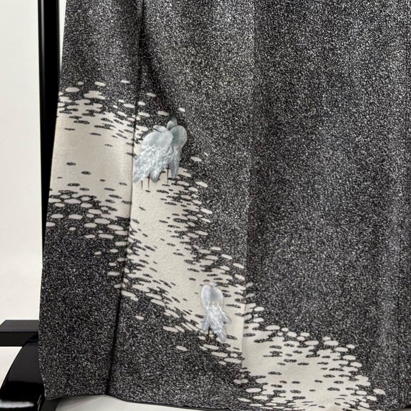 【付下げ】 灰色系 黒灰 秀品 C 約160cm~約169cm 裄丈66cm (M)size 袖丈50cm-60cm 4000-7980 二万以下