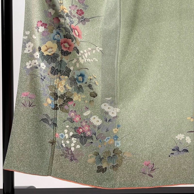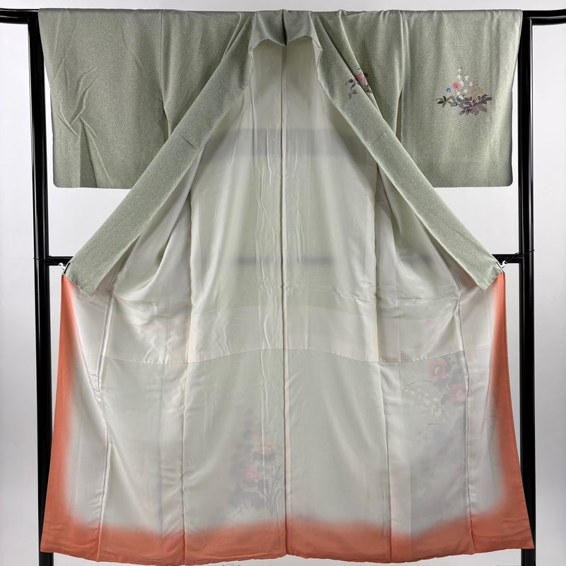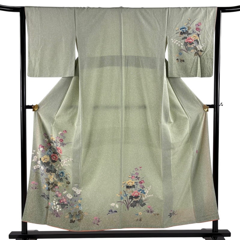 【付下げ】 緑系 薄緑 秀品 B 約150cm~約159cm 裄丈63cm-64cm (S)size 袖丈47cm 4000-7980 二万以下