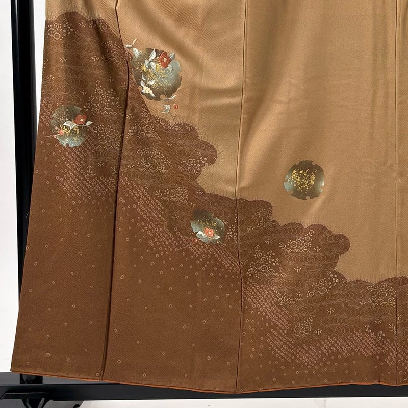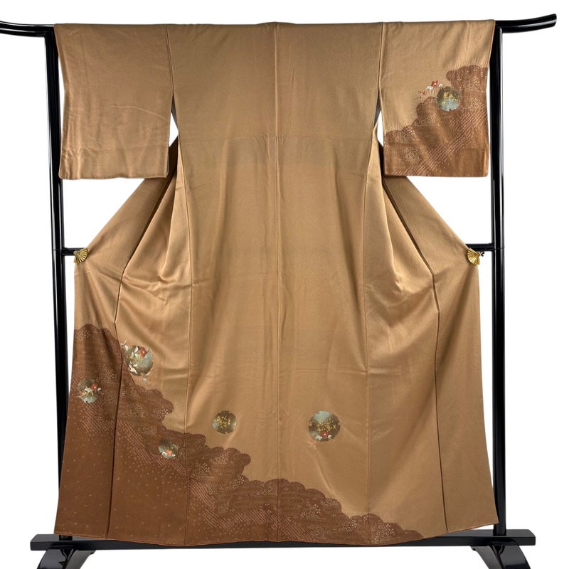 【付下げ】 茶系 茶色 秀品 B 約150cm~約159cm 裄丈63cm-64cm (M)size 袖丈47cm 4000-7980 二万以下