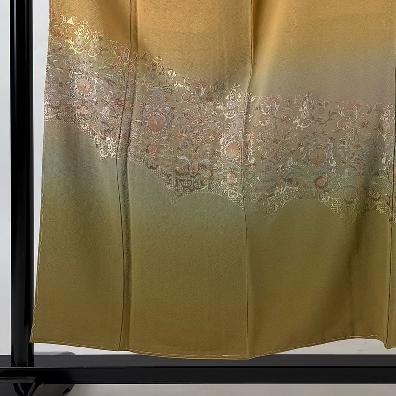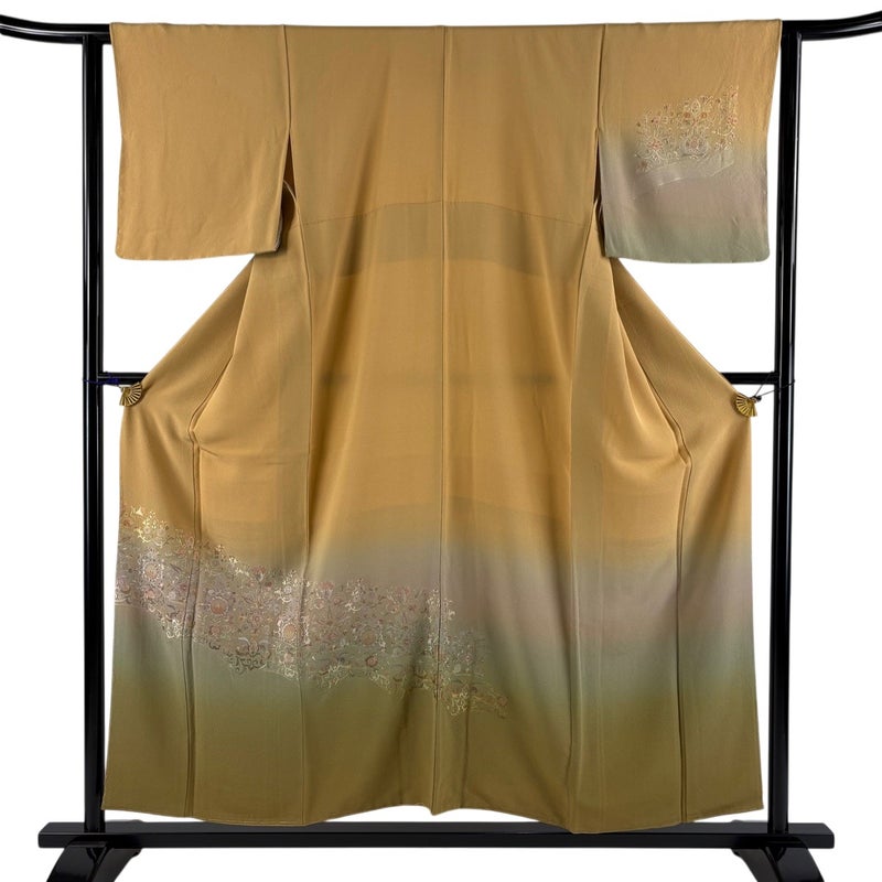 【着物ランク】秀品 【素材】正絹 【身丈】約155cm 【裄丈】約62cm 【袖丈】約45.5cm 【袖幅】約32cm 【前幅】約23.5cm 【後幅】約29cm 【サイズ】S 【着物仕立て】袷 【着用時期】10~5月 【状態ランク】ランクB 【着物着用シーン】披露宴、パーティー、式典、食事会、お茶会、正月
