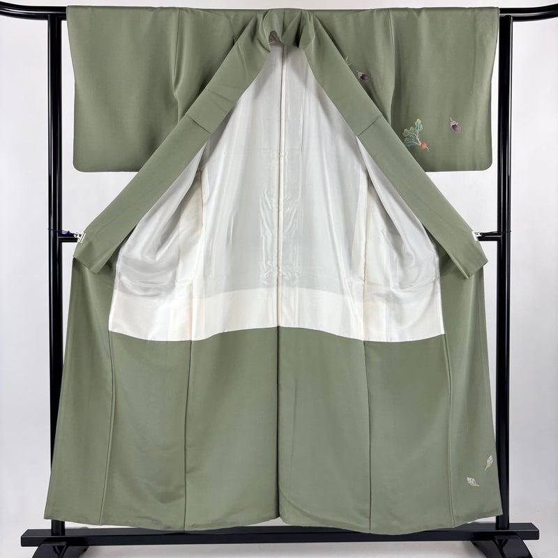 【付下げ】 緑系 よもぎ色 秀品 B 約150cm~約159cm 裄丈62cm以下 (S)size 袖丈47cm 4000-7980 二万以下
