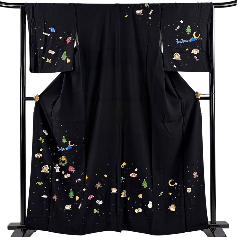 【付下げ】 黒系 黒 逸品 C 約160cm~約169cm 裄丈65cm (M)size 袖丈50cm-60cm 30000- 五万以下