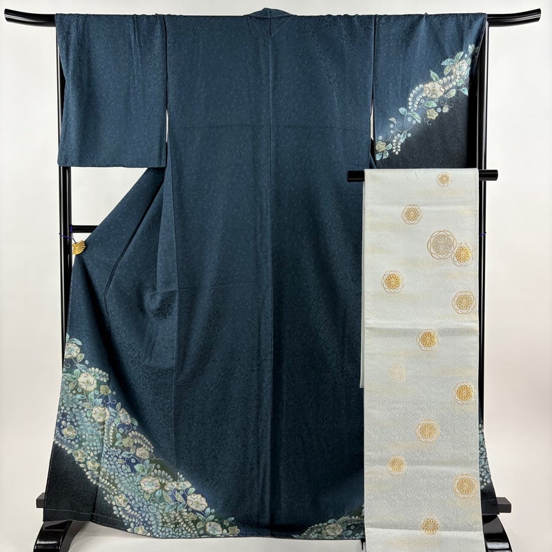 【付下げ】 青系 青緑 秀品 A 約170cm~約179cm 裄丈67cm-68cm (L)size 袖丈49cm 9990-29990 美品 五万以下