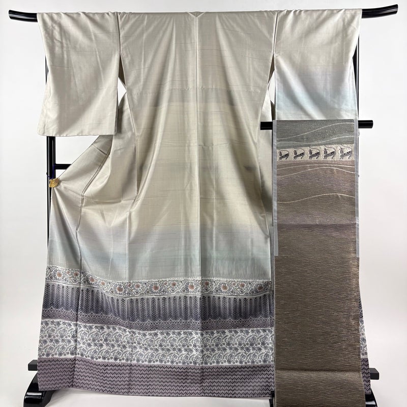 【付下げ】 灰色系 灰色 名品 A 約170cm~約179cm 裄丈69cm以上 (L)size 袖丈50cm-60cm 30000- 美品 五万以下