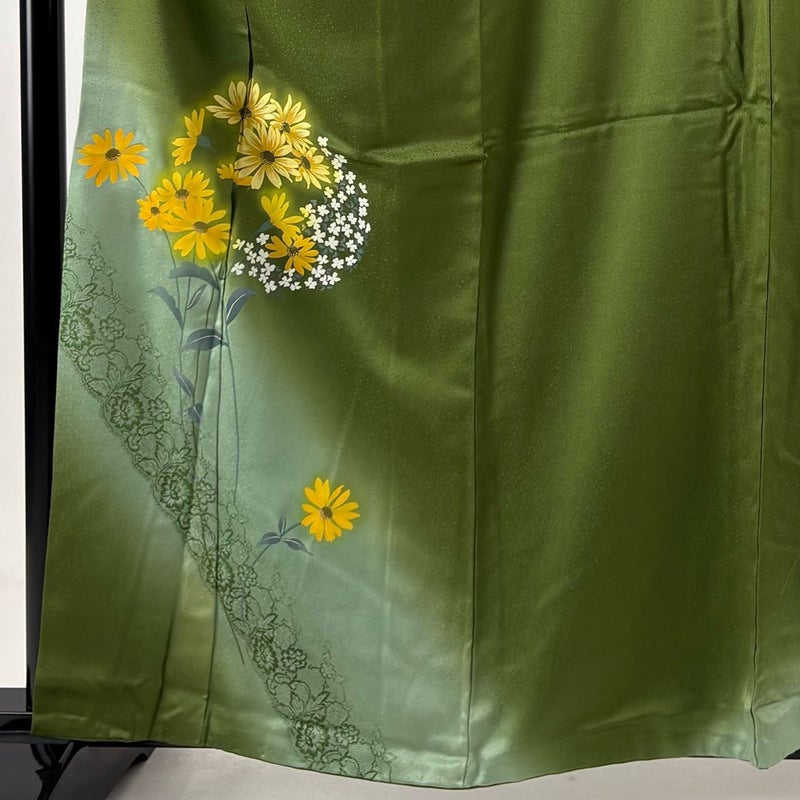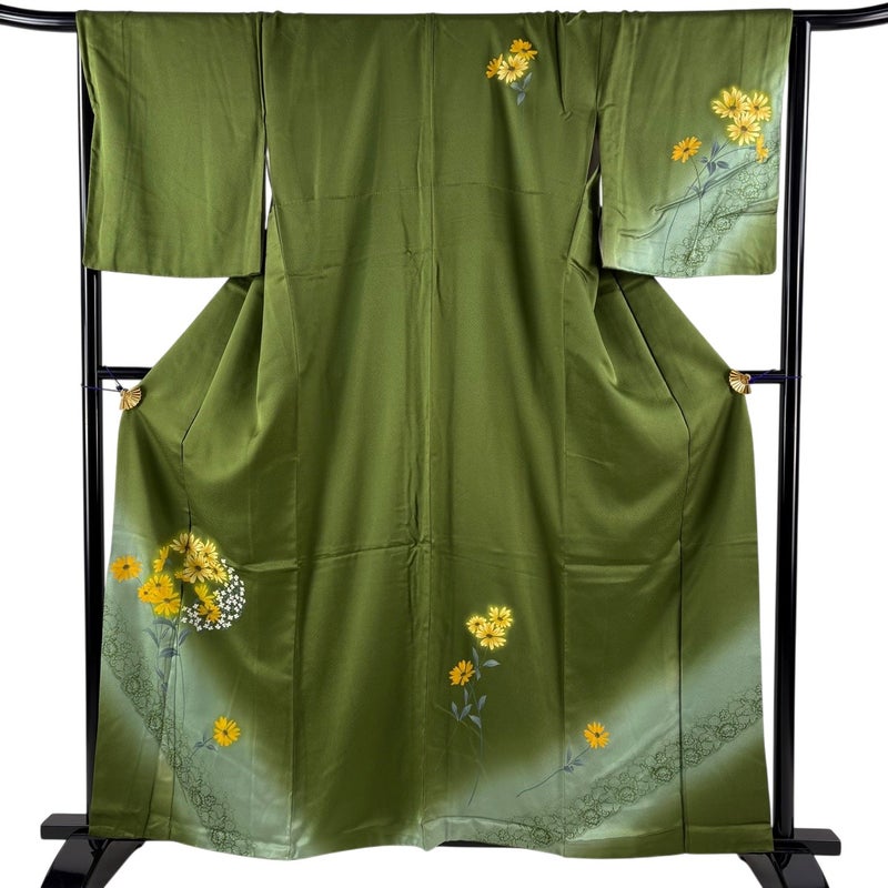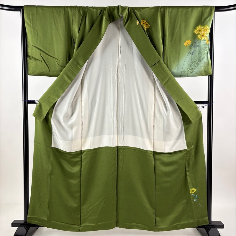 【付下げ】 緑系 よもぎ色 秀品 B 約150cm~約159cm 裄丈66cm (M)size 袖丈49cm 4000-7980 二万以下