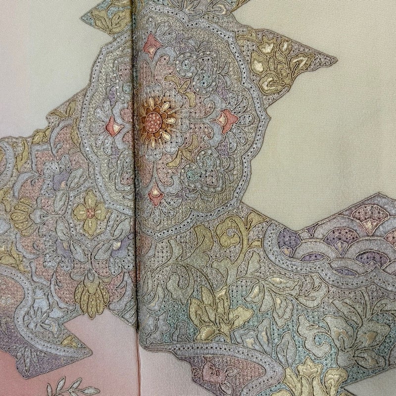 【着物ランク】秀品 【素材】正絹 【身丈】約161cm 【裄丈】約62.5cm 【袖丈】約48.5cm 【袖幅】約32.5cm 【前幅】約24cm 【後幅】約30cm 【サイズ】S 【着物仕立て】袷 【着用時期】10~5月 【状態ランク】ランクC 【着物着用シーン】披露宴、パーティー、式典、食事会、お茶会、正月