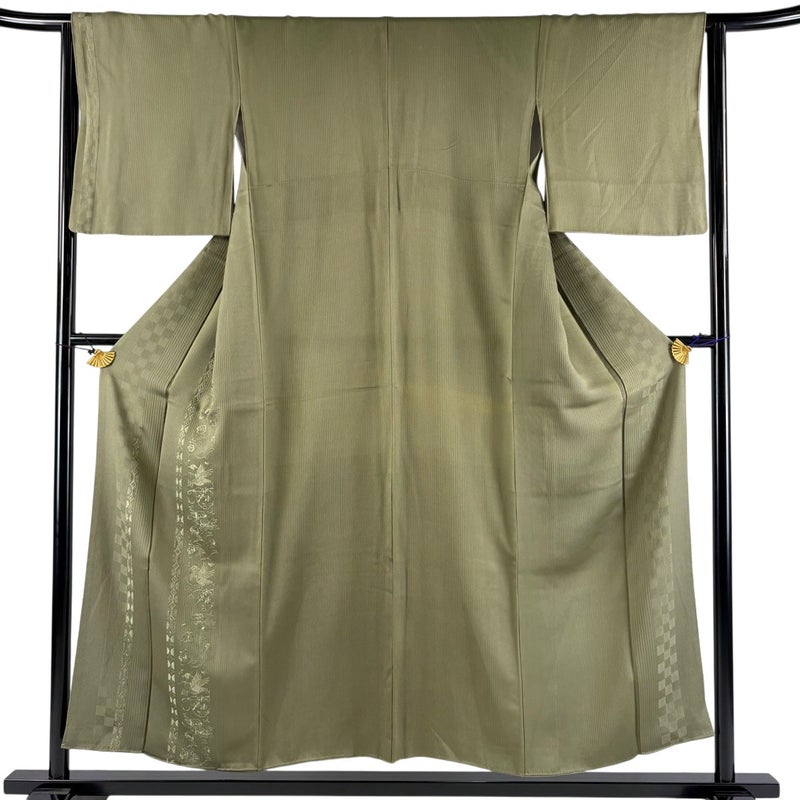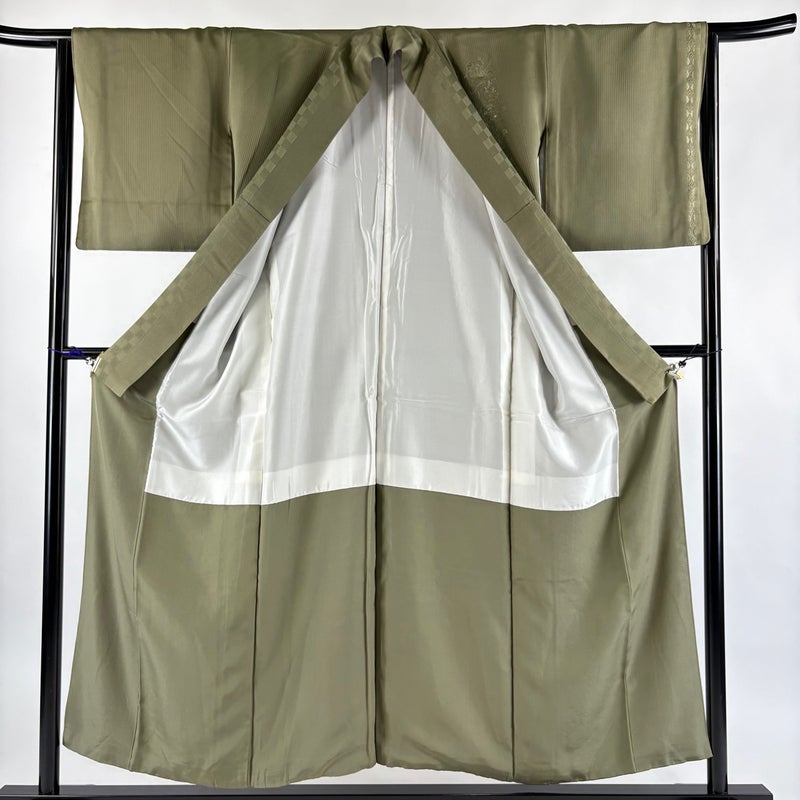 【付下げ】 灰色系 灰緑 秀品 C 約150cm~約159cm 裄丈63cm-64cm (M)size 袖丈46cm以下 4000-7980 二万以下