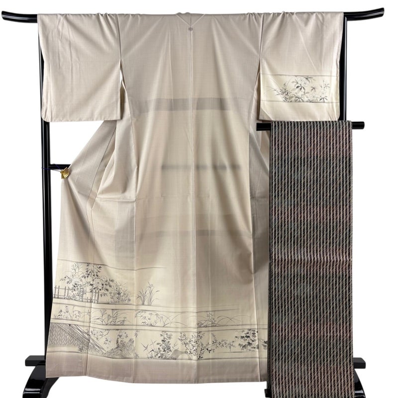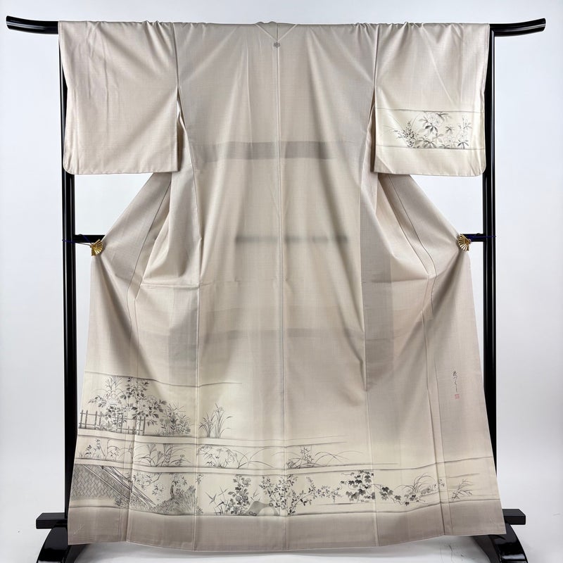 【付下げ】 茶系 薄茶色 秀品 A 約160cm~約169cm 裄丈67cm-68cm (L)size 袖丈49cm 9990-29990 美品 五万以下
