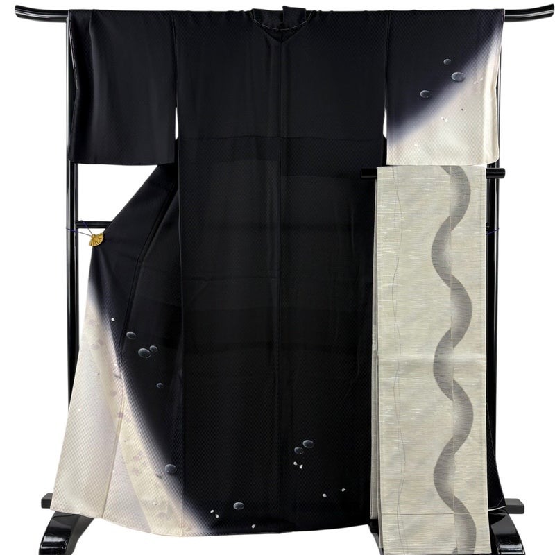 【付下げ】 黒系 黒 秀品 A 約160cm~約169cm 裄丈67cm-68cm (L)size 袖丈48cm 9990-29990 美品 五万以下