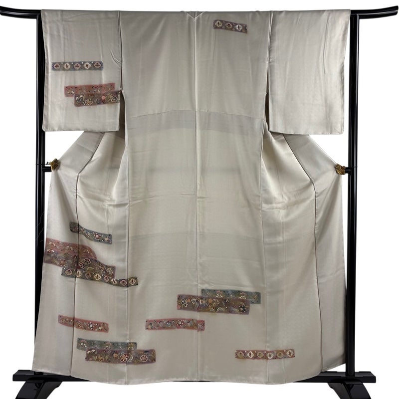 【付下げ】 白系 ベージュ 秀品 B 約150cm~約159cm 裄丈63cm-64cm (M)size 袖丈50cm-60cm 4000-7980 二万以下