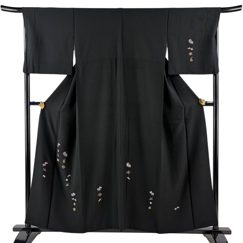 【付下げ】 黒系 黒 秀品 B 約150cm~約159cm 裄丈67cm-68cm (L)size 袖丈48cm 4000-7980 二万以下