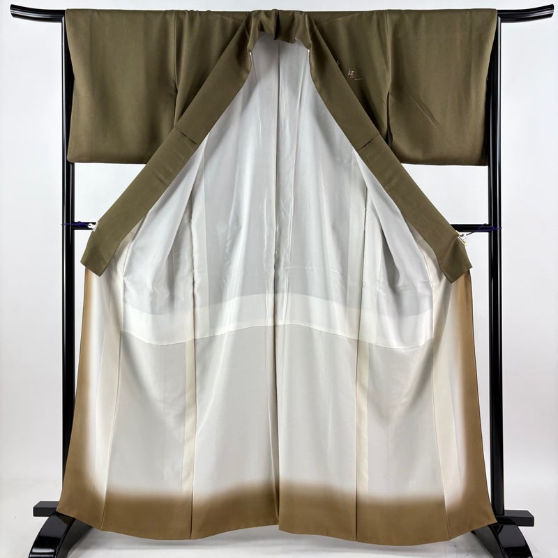 【付下げ】 茶系 茶緑色 秀品 A 約160cm~約169cm 裄丈66cm (M)size 袖丈48cm 7990-9980 美品 二万以下