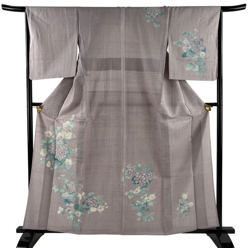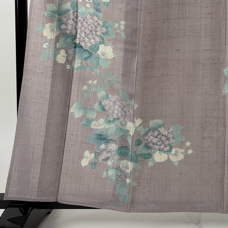 【着物ランク】秀品 【素材】正絹 【身丈】約162cm 【裄丈】約66cm 【袖丈】約52cm 【袖幅】約34cm 【前幅】約23.5cm 【後幅】約31cm 【サイズ】M 【着物仕立て】単衣 【着用時期】6/9月 【状態ランク】ランクB 【着物着用シーン】披露宴、パーティー、式典、食事会、お茶会、正月
