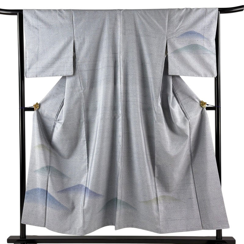 【付下げ】 灰色系 青灰色 秀品 B 約150cm~約159cm 裄丈63cm-64cm (M)size 袖丈47cm 4000-7980 二万以下
