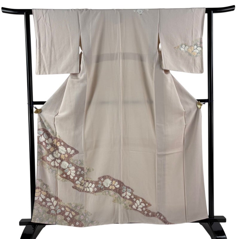 合わせる帯の色柄により、お召しいただく席を選べる付下げです。 帯により印象を変える事の出来る印象のお着物は、様々に活躍してくれることでしょう。 ※身丈・裄丈の縫込みの長さは測っておりません。 上前所々と後身頃の背中付近と右前袖にシミ、衿周りや両袖口中に薄汚れがございます。 胴裏所々にシワがございます。 リユース品としては良い状態で、まだまだご活用頂けると思われます。 ※なお、厳しく商品の状態確認を行っておりますが、記載の汚れ以外にも見落とし箇所がある可能性がある旨ご了承いただけますと幸いです。 沢山の商品の中からご覧いただき誠にありがとうございます。 【PR2】
