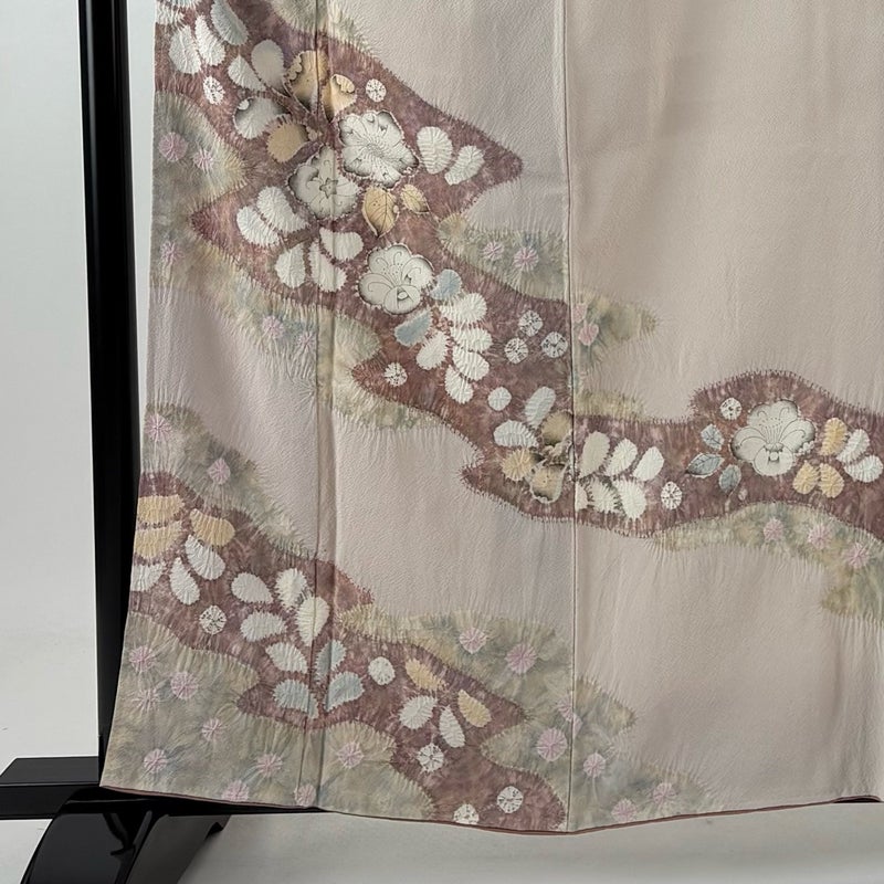 【着物ランク】秀品 【素材】正絹 【身丈】約159cm 【裄丈】約62cm 【袖丈】約48cm 【袖幅】約32.5cm 【前幅】約22.5cm 【後幅】約28.5cm 【サイズ】S 【着物仕立て】袷 【着用時期】10~5月 【状態ランク】ランクB 【着物着用シーン】披露宴、パーティー、式典、食事会、お茶会、正月