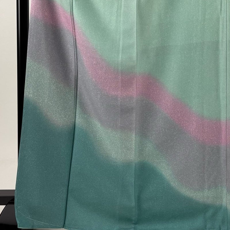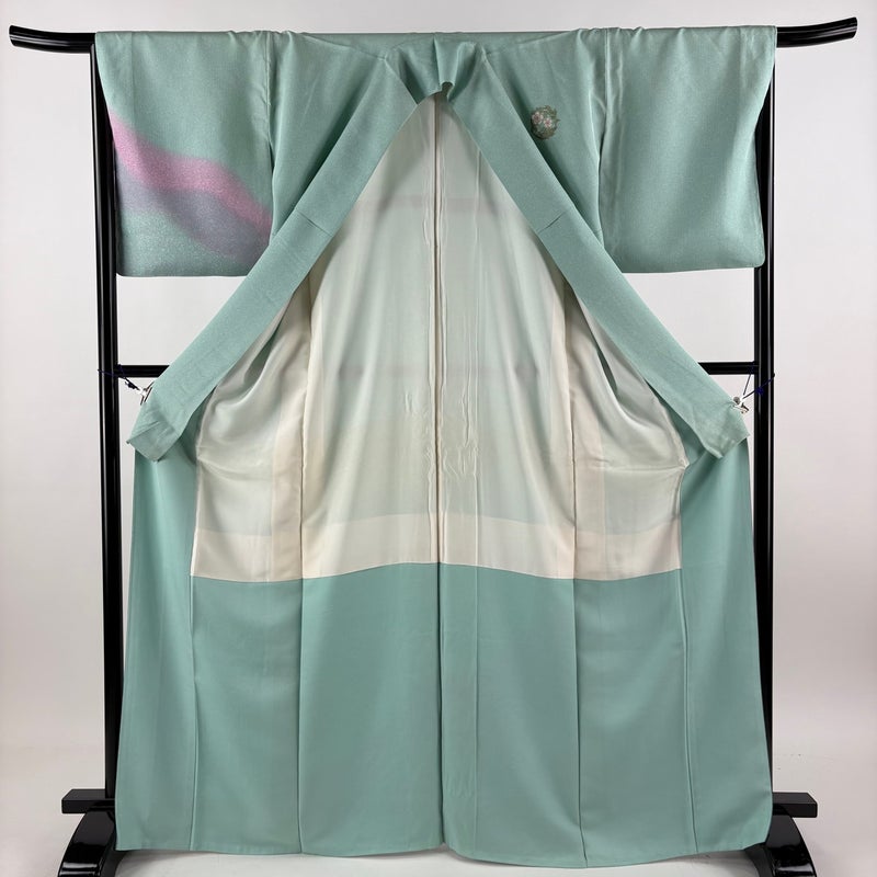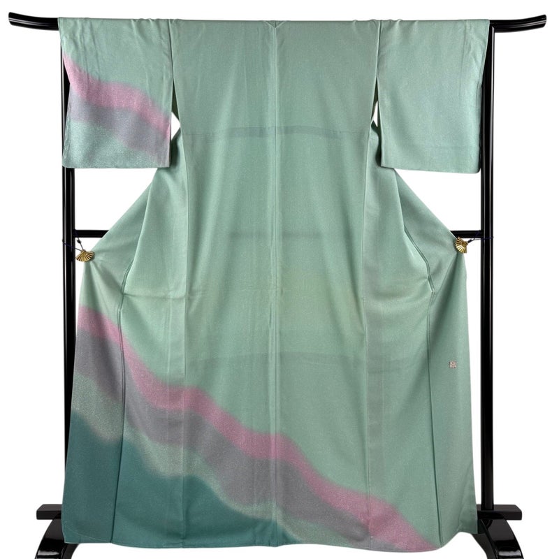 【付下げ】 緑系 薄緑 秀品 C 約160cm~約169cm 裄丈66cm (M)size 袖丈48cm 4000-7980 二万以下