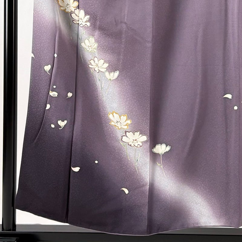 【付下げ】 灰色系 灰紫 秀品 C 約150cm~約159cm 裄丈63cm-64cm (M)size 袖丈46cm以下 4000-7980 二万以下