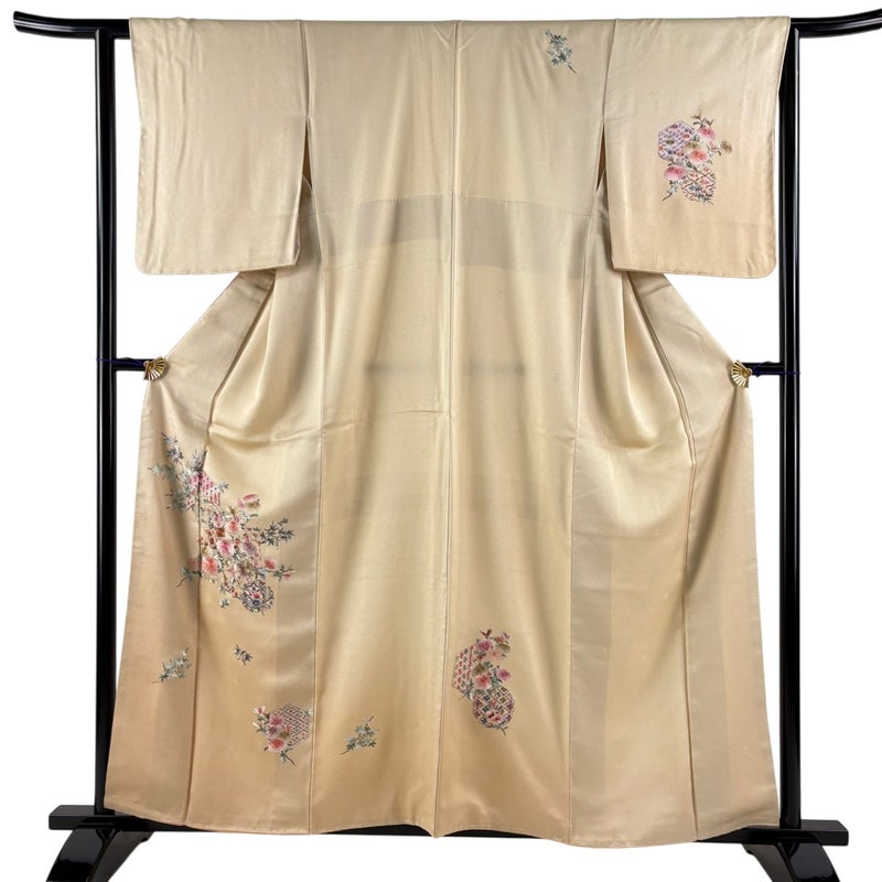 【付下げ】 白系 ベージュ 秀品 A 約150cm~約159cm 裄丈62cm以下 (S)size 袖丈50cm-60cm 7990-9980 美品 二万以下