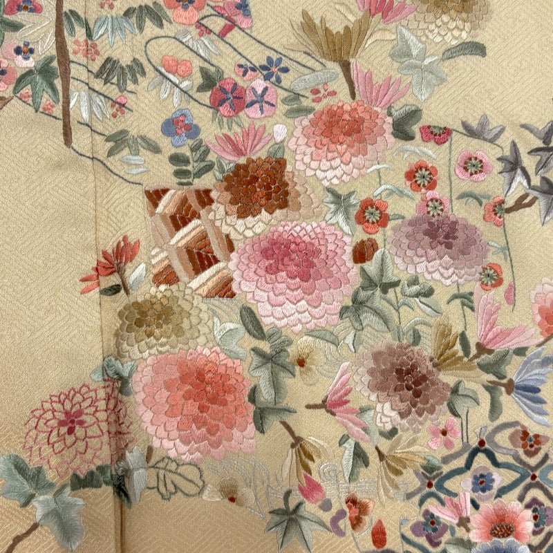 【着物ランク】秀品 【素材】正絹 【身丈】約159.5cm 【裄丈】約61.5cm 【袖丈】約51cm 【袖幅】約32.5cm 【前幅】約24.5cm 【後幅】約28.5cm 【サイズ】S 【着物仕立て】袷 【着用時期】10~5月 【状態ランク】ランクA 【着物着用シーン】披露宴、パーティー、式典、食事会、お茶会、正月