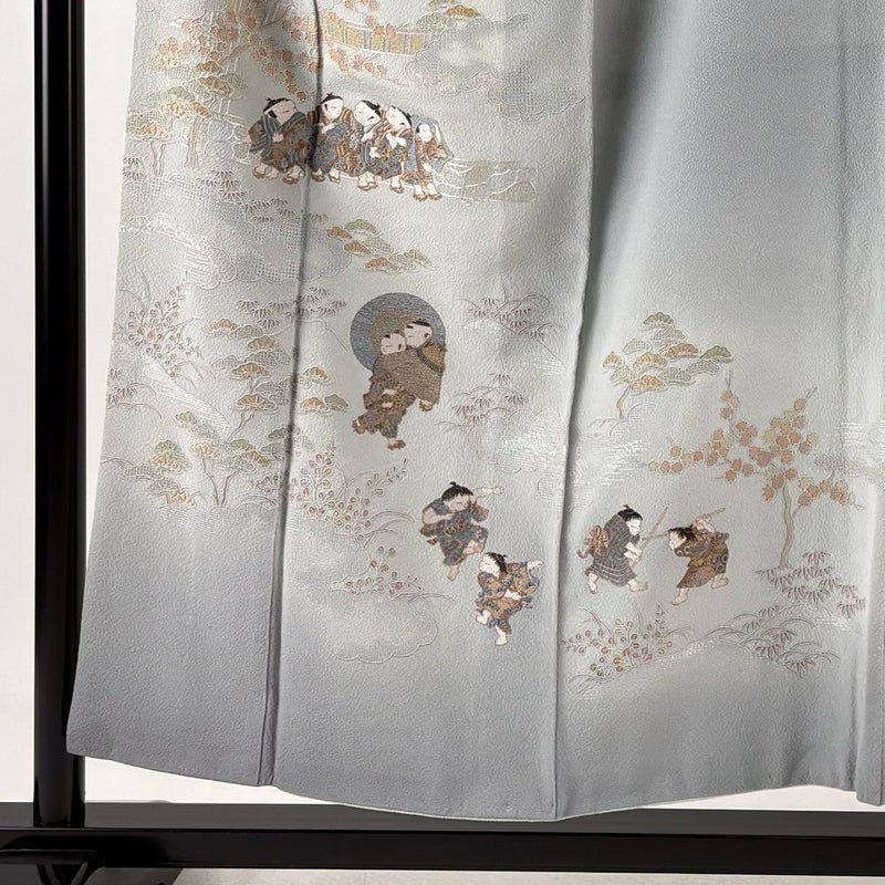 【付下げ】 灰色系 青灰色 秀品 B 約150cm~約159cm 裄丈62cm以下 (S)size 袖丈48cm 4000-7980 二万以下