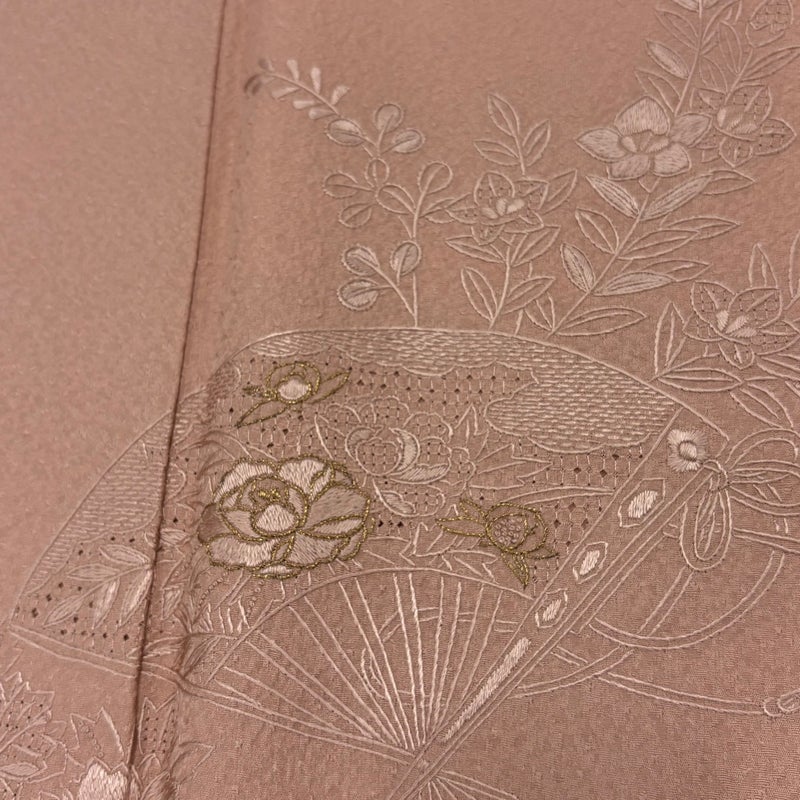 【付下げ】 赤系 ピンクベージュ 秀品 A 約160cm~約169cm 裄丈66cm (M)size 袖丈48cm 7990-9980 美品 二万以下