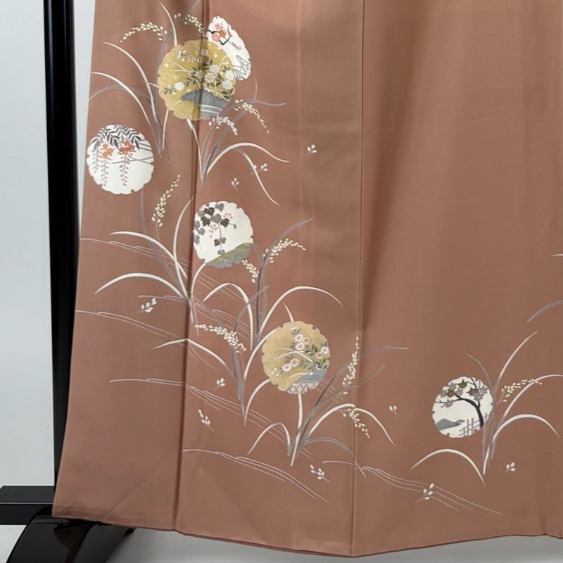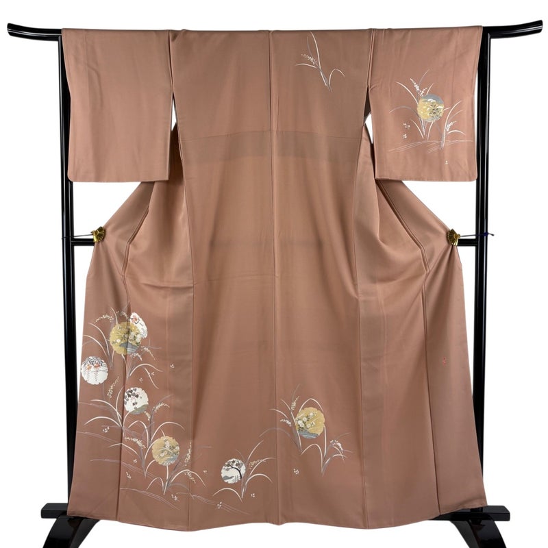 【付下げ】 赤系 ピンクベージュ 秀品 B 約160cm~約169cm 裄丈65cm (M)size 袖丈49cm 4000-7980 二万以下