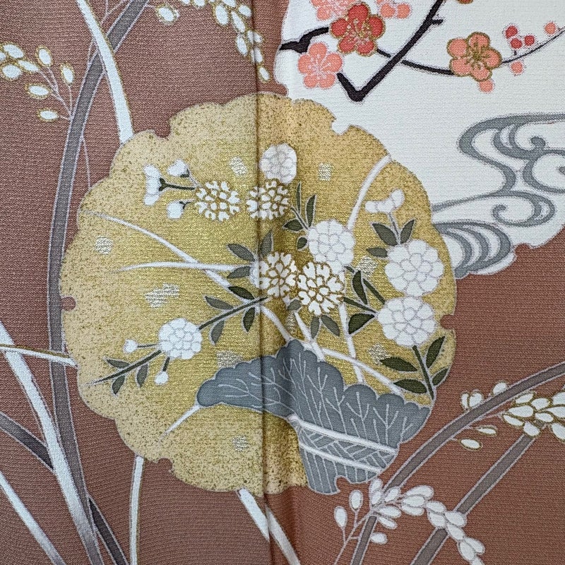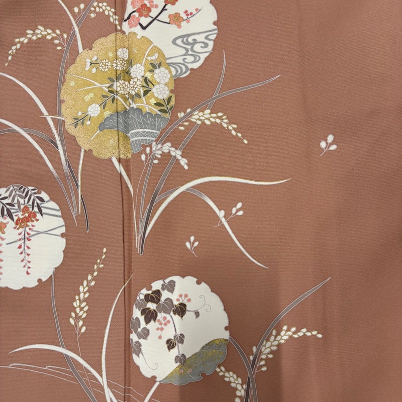 【着物ランク】秀品 【素材】正絹 【身丈】約160.5cm 【裄丈】約65cm 【袖丈】約49cm 【袖幅】約33.5cm 【前幅】約23cm 【後幅】約29cm 【サイズ】M 【着物仕立て】袷 【着用時期】10~5月 【状態ランク】ランクB 【着物着用シーン】披露宴、パーティー、式典、食事会、お茶会、正月