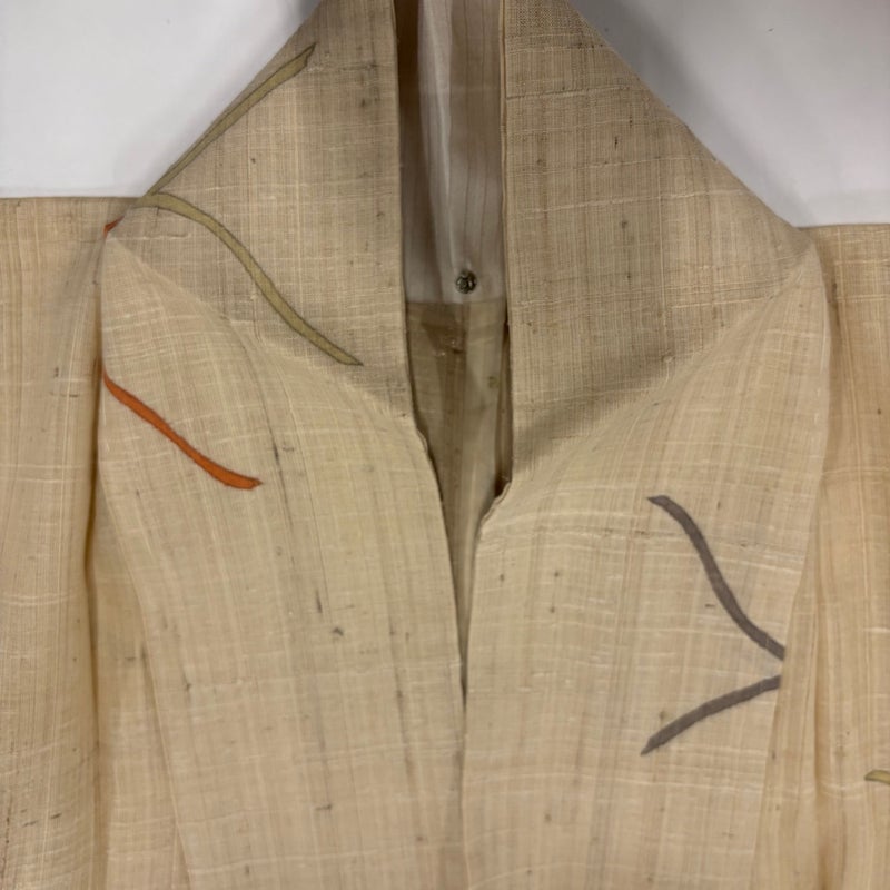 【着物ランク】秀品 【素材】麻 【身丈】約159cm 【裄丈】約62cm 【袖丈】約48cm 【袖幅】約33cm 【前幅】約23cm 【後幅】約30.5cm 【サイズ】S 【着物仕立て】袷 【着用時期】10~5月 【状態ランク】ランクA 【着物着用シーン】披露宴、パーティー、式典、食事会、お茶会、正月