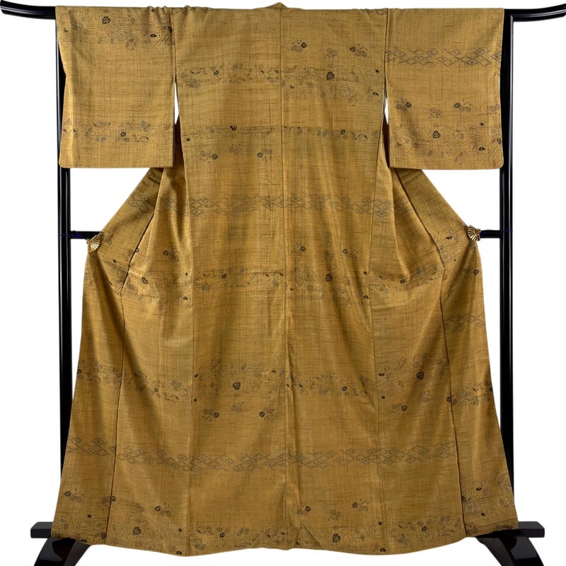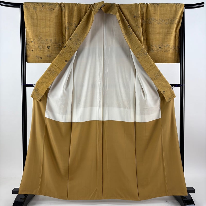 【付下げ】 黄色系 薄黄土色 秀品 A 約160cm~約169cm 裄丈65cm (M)size 袖丈49cm 7990-9980 美品 二万以下